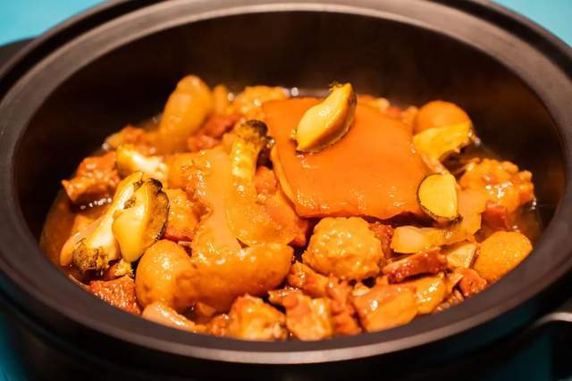 古法飄香壇子肉的食材豐富程度,讓人聯想到閩菜中的佛跳墻。壇子肉是四川傳統葷菜中的經典菜,遵循瞭傳統菜譜中的川味做法,又加瞭煨制的鮑魚、海參,鮮香度被放到瞭最大。