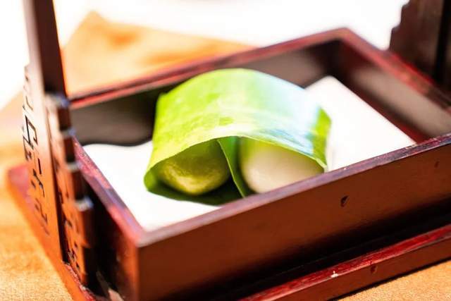 糯米胃不能抗拒的葉兒粑,被考究地裝在紅木盒子裡,皮子的韌勁恰到好處,有甜與咸兩種口味,甜心的是豆沙加上少許果仁,咸餡則是肉末芽菜,一甜一咸,相得益彰。