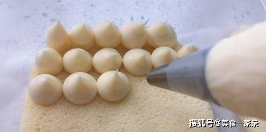21.盒子底部鋪一片蛋糕,擠一層小水滴形狀的豆乳奶酪醬。
