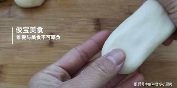 邊緣一定要捏緊實,不能夠有縫隙或穿孔,這也是糖糕空心的關鍵。包好以後用手輕輕抻長,