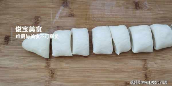 醒好的面團揉搓光滑,分成均勻的八個劑子。