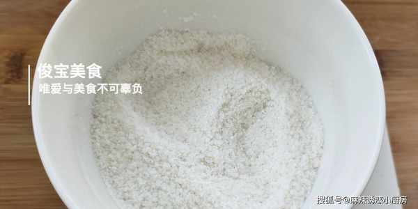 然後來調糖餡。60克白糖,加15克面粉,攪拌均勻備用。加面粉的目的是減緩白糖的流動性,吃的時候就不會燙口。