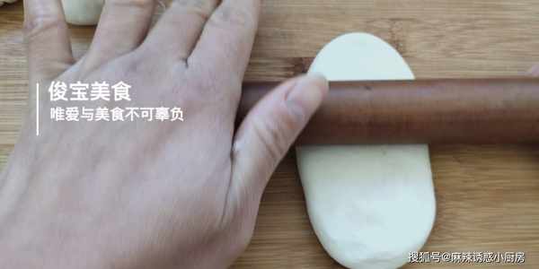 再用搟面杖搟成橢圓形的薄片。搟的時候要註意:上下兩面都要搟,而且力道要均勻。既要薄又不能搟破皮。