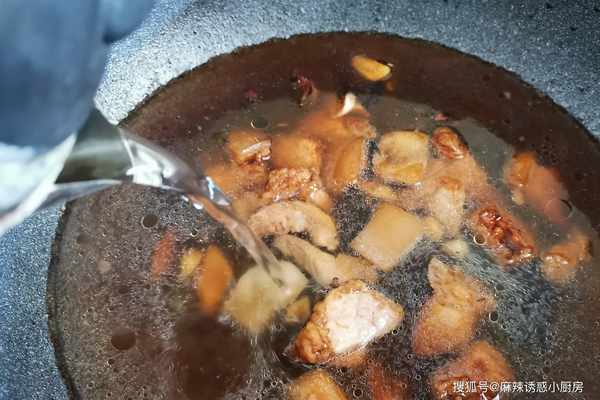 第二步,關鍵在於加水,無論是燉紅燒肉還是做豬肉白菜燉粉條,都需要加熱水,因為鍋裡的肉遇到冷水會熱脹冷縮,影響豬肉的口感,這也是為何有時候做出來會肉質又硬又柴的原因。