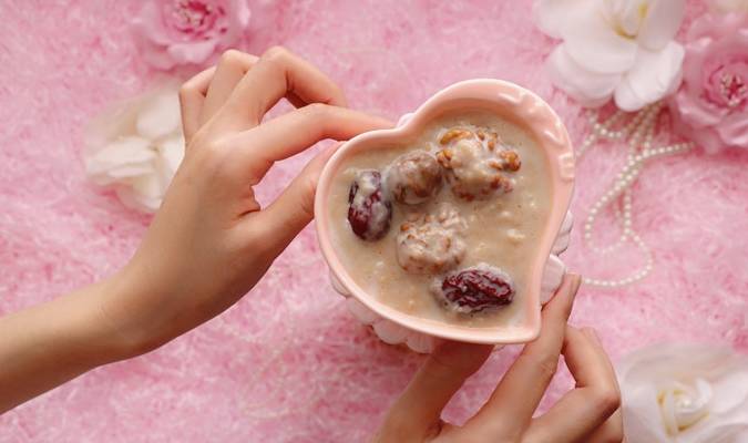 兩人份所需食材有燕麥片50克、牛奶200毫升、紅棗5顆、核桃仁4塊、桂圓幹5顆、紅糖2小塊。