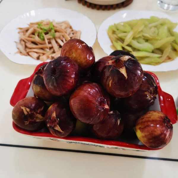 簡簡單單3個小菜配上一盤水果,無花果是自家果樹上結的果子,隨手摘了一大筐,沒想到閨蜜嘗的大加讚揚,說沒吃過這麼甜的無花果呢。