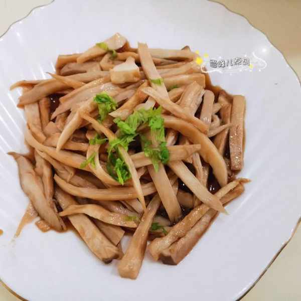 手撕杏鮑菇做法:1,杏鮑菇切厚片用手撕成小條,開水汆燙撈出過凉。2,撈到盤子裏,加入生抽,醋,鹽,香油拌勻。3,上桌前點綴香菜即成。