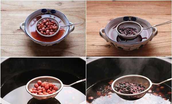 制作方法:紅皮花生淘洗幹凈後浸泡半小時。