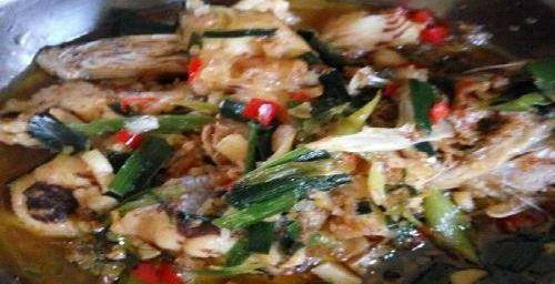 2.大火熱鍋,加植物油燒熱,生薑片煸香,草魚塊下鍋油煎,兩面煎黃,青紅辣椒段,大蒜段下翻翻炒,加食鹽,生抽調味,炒熟後出鍋裝盤即可食用。