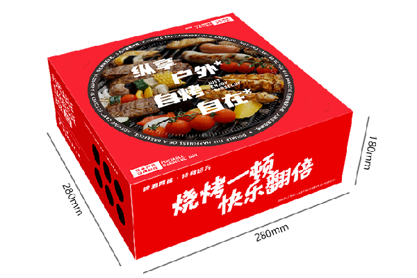瓦楞紙盒爐體四周還有經過科學設計的14個直徑25mm的大散熱孔,使空氣更流通,快速散熱,燒烤更痛快。