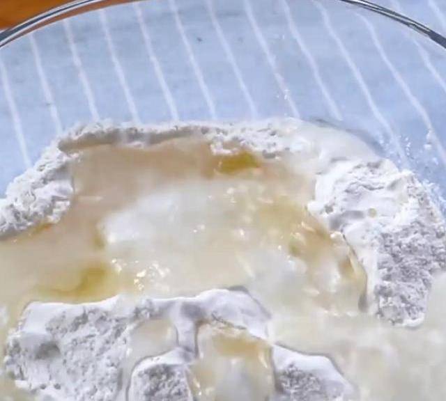 第4步、做油酥。碗中加入普通面粉、玉米油,混合均勻,揉成團,蓋上保鮮膜,靜置半個小時。