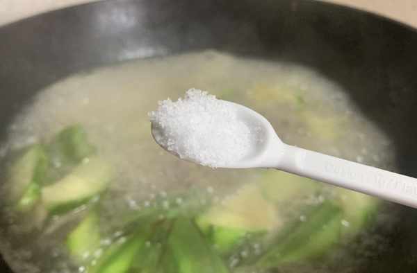 第五步:最後根據個人口味,加入適量的鹽進行調味。出鍋前再撒入蔥段即可。