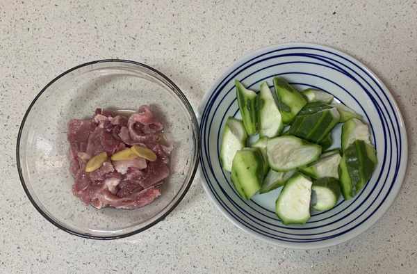 所需要的食材:絲瓜1根,瘦肉300g,生蔥2根,薑片適量,花生油適量,鹽適量,生抽適量。