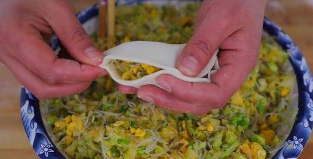 提前泡發好的粉絲切絲放入包菜裡,頭腦的雞蛋,倒入包菜裡,加入蔥花、薑末、胡椒粉、生粗、所以我叫熟油,切長條。相同的面劑,先給它搓圓,改成薄面片,改成這種薄面片就可以瞭。曲張面片面片的中間畫上剛才調好的餡料,兩邊對折,周邊捏緊,再從一邊捏花邊。