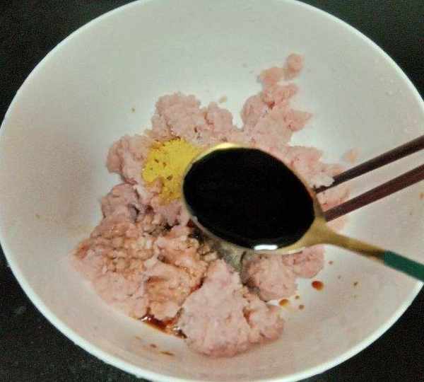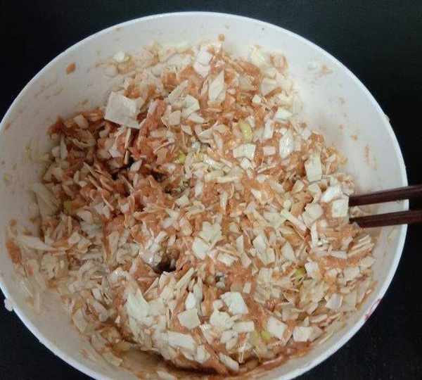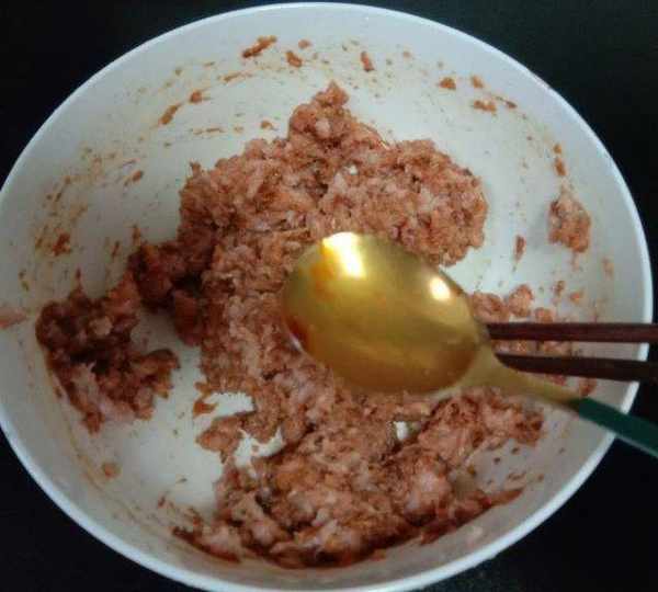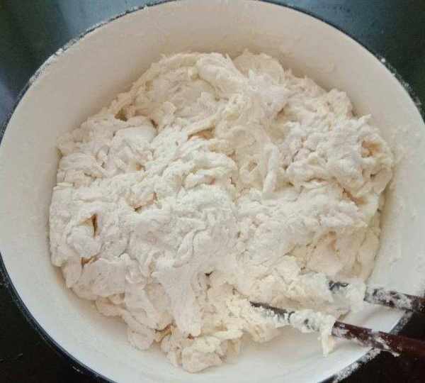 第12步、攪拌均勻後分三次加入蔥薑水攪拌上勁。