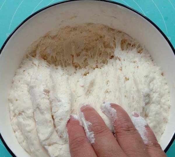 第16步、面團發酵至兩倍大裡面呈蜂窩狀。