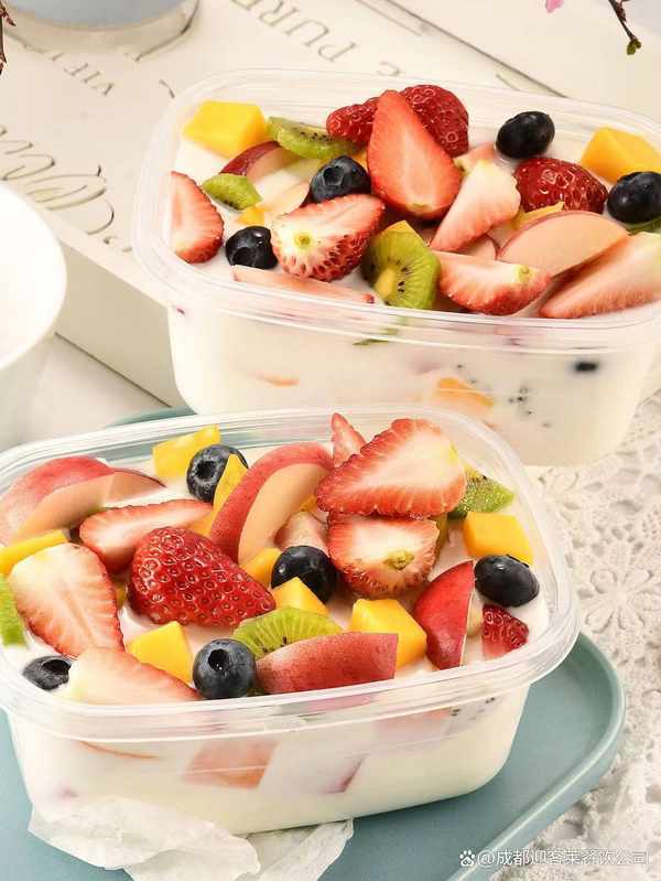 拉絲酸奶水果撈是將新鮮的水果切碎之後配合酸奶經過制作而成