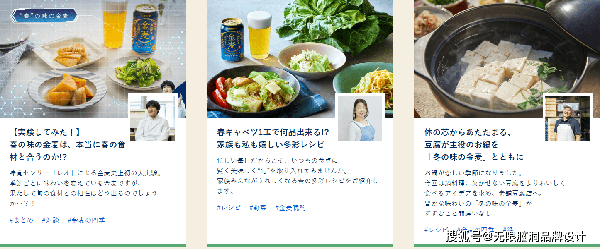 所以三得利將頁面上大部分的篇幅都用於這兩部分的呈現,其他信息均隻是簡單帶過。