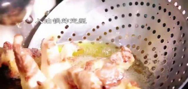 2、豬肉放入油鍋炸至定型,不能炸太久哦;
