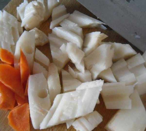 第3步、蓮藕和胡蘿卜洗凈去皮切塊。