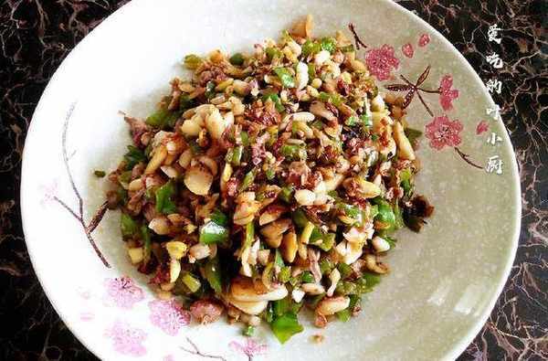 1.食材準備:適量的鮮花生洗凈,用刀拍扁再切碎,青辣椒洗凈切丁,蒜瓣切片,大蔥切蔥花。