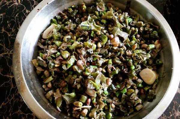 1.食材準備:適量的豆角洗凈切碎,大蔥切蔥花,蒜瓣切片,生薑切絲。