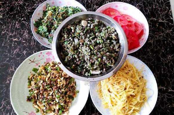 1.食材準備:韭菜洗凈瀝幹水分,等到韭菜完全瀝幹後切成末,在準備三個雞蛋、蔥花、辣椒面。