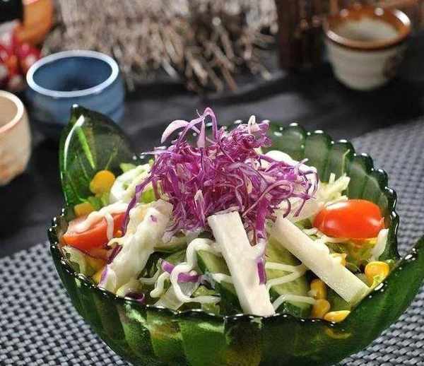 各種你喜歡的蔬菜備齊,切塊,擠上沙拉醬或者千島醬,拌勻即可。