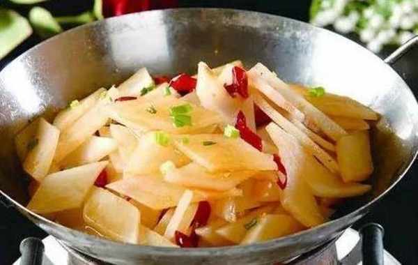 幹鍋蘿卜:1、鍋裡放少量油或許不放油,放入五花肉和生薑煸炒;2、中小火煸炒至五花肉片出油,而且色彩變金黃;3、放入青紅椒段翻炒,參加生抽、蠔油、料酒、少量糖翻炒平均4、;翻炒平均後參加白蘿卜片;5、加一小碗水或高湯翻炒,蓋蓋燜煮煮一會,蘿卜煮熟後撒青蒜;6、翻炒炒勻後加少量鹽、雞精調味便可;
