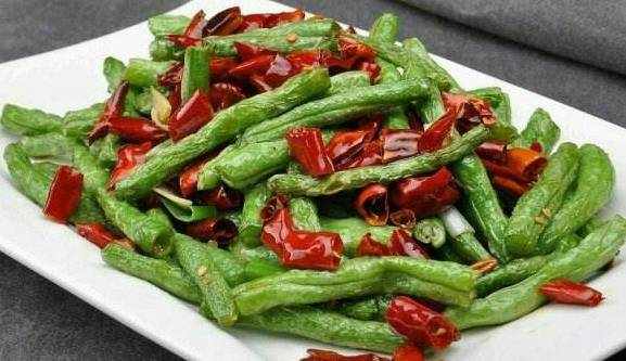 2、煸炒豆角前,最重要的一步就是洗凈的豆角段,盡可能瀝幹水分,這樣炸的時候,就避免瞭水油接觸而爆油。