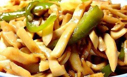 將青椒切成細條狀或薄片。把杏鮑菇洗凈,切細條狀,切條狀較好入味,將大蒜瓣輕拍去皮,切丁,在熱鍋中加入一些食用油,待油熱時,加入切好的大蒜爆香。大蒜炒出香味後加入切好的青椒絲翻炒,加入少許食鹽,讓青椒入味,脫水。青椒稍微斷生時加入杏鮑菇,大火翻炒。再加入鹽,生抽調味。少許老抽調色。待青椒和杏鮑菇都斷生之後加入少許雞精拌炒均勻即可。