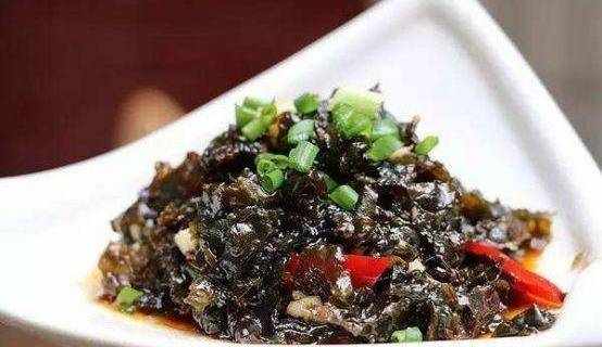 3.煮好後撈到裝有涼水的盆中,地皮菜擠幹水份,放入盤中