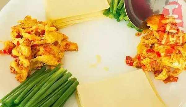 7、將炒熟的雞蛋和幹豆腐、小蔥一起擺入盤中。