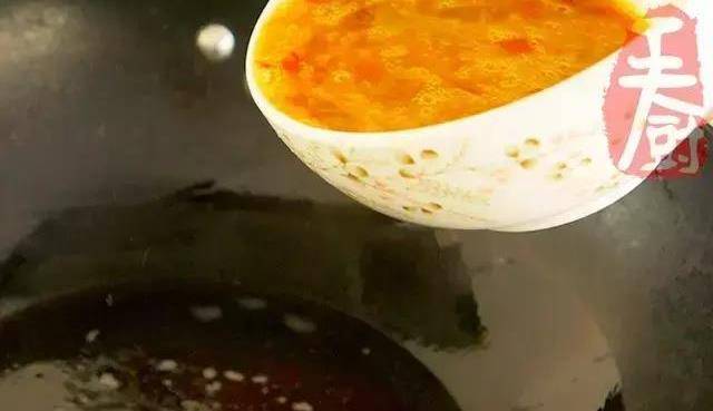 5、剩餘的雞蛋黃和另一個雞蛋磕入碗裡,放入一勺果然優辣椒醬。