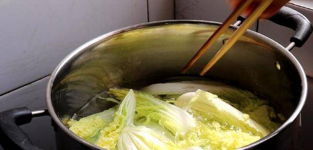 先準備3個娃娃菜,先把根部切掉,然後再豎著對半切開。娃娃菜切好後再次清洗幹凈,然後放鍋裡焯下水