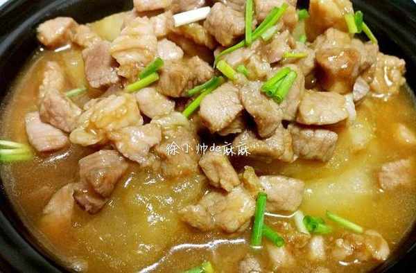 1、新鮮的豬肉洗凈切塊狀;土豆削皮切塊狀,漂洗幾遍;香蔥洗凈切碎。