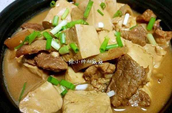 3、將豆腐塊放進去,倒入沒過豆腐塊的熱水,大火煮開,小火燜煮8-10分鐘。