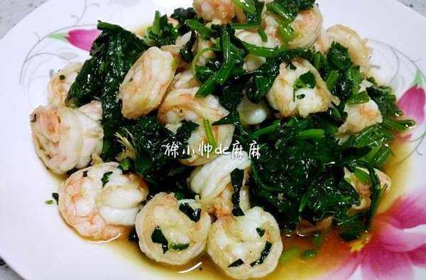 1、新鮮的菠菜一把,洗凈。鮮蝦剝開成蝦仁。生薑切幾片,蒜拍碎幾顆。