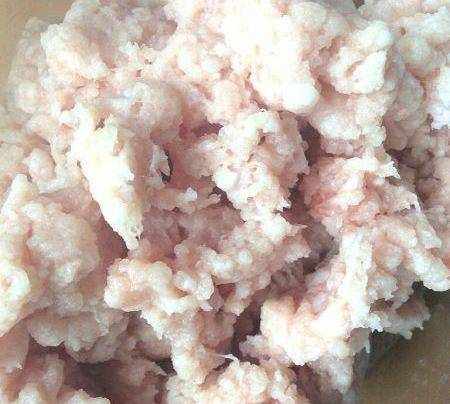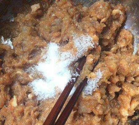 肉末中加入少許鹽,味精拌勻