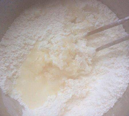 用適量的開水燙面,邊燙邊攪