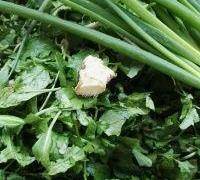 1. 薺菜(也叫地菜)擇洗幹凈,水燒開加1g鹽放入薺菜關火,用筷子抄下、塌架既可取出、過涼擠幹水份備用。蔥、薑、香菜分別淘洗幹凈控水備用。