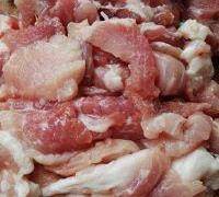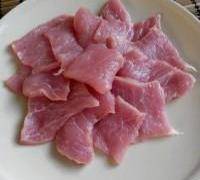 2. 豬肉洗凈放案板上先切成薄片。