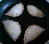 12. 包入餃子餡,包好放鍋拍上。
