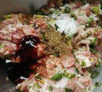 3. 再剁碎放入盆中,倒入生抽、蠔油、自加工調料、鹽拌勻。