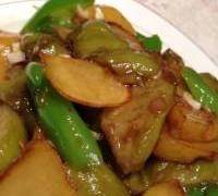 3. 分別將土豆和茄子入熱油鍋炸至微黃取出備用。
