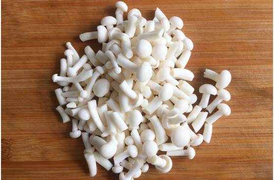 第一步:將白玉菇去除根部,清洗幹凈後切成小段,備用。