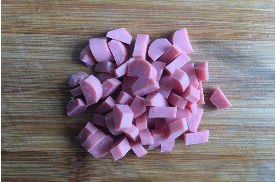 第四步:火腿腸切成小丁備用。