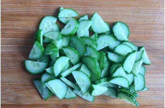 第二步:黃瓜洗凈後切成薄片備用。