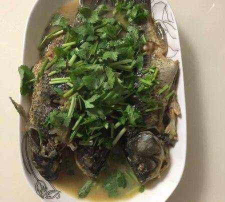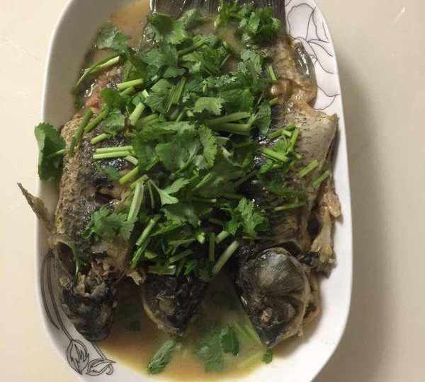出鍋裝盤撒上香菜末?美味的鯽魚做好啦