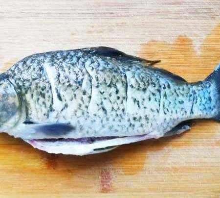 鯽魚去鱗,洗幹凈,去掉肚子裡的黑膜。